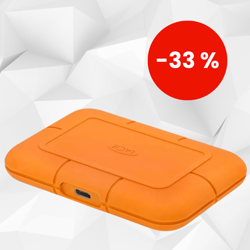 LaCie7 en inventaireSSD LaCie Rugged USB-C SSD robuste Transférez et éditez des vidéos RAW 4K avec des vitesses allant jusqu'à 950 Mo/s L'interface USB Type-C es...